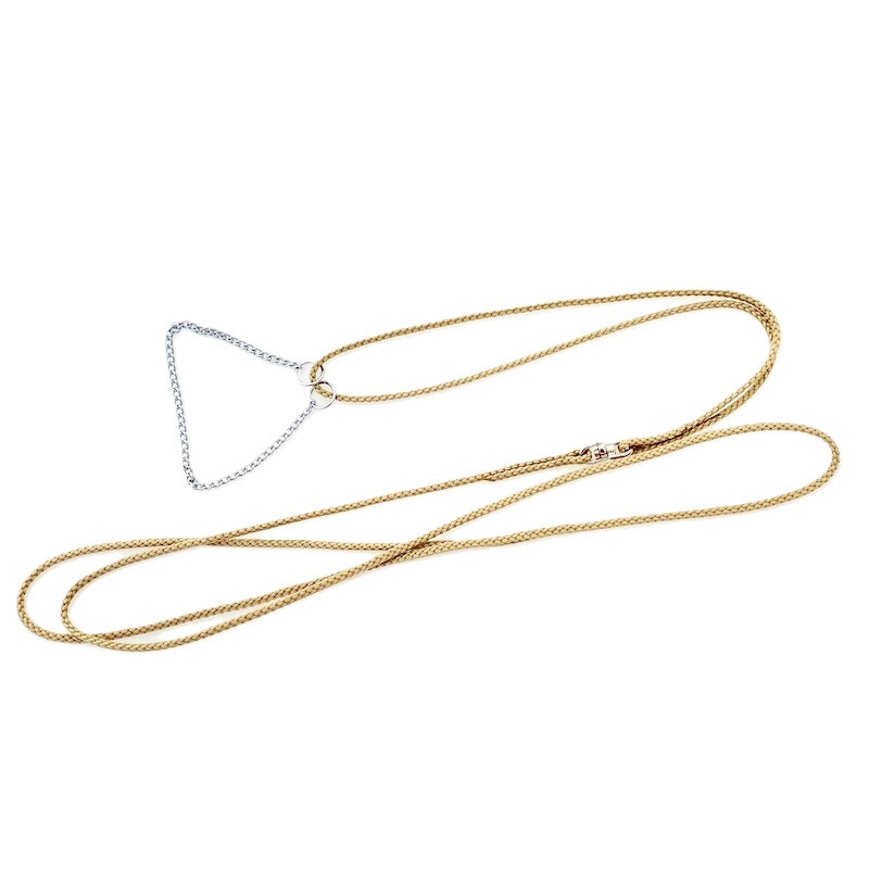 Laisse ronde de présentation sans bloqueur pour pouvoir descendre le collier sur l’encolure en statique et remonter le collier pour la marche.