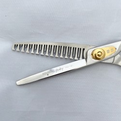 Les ciseaux sculpteur YSAKY ont une lame lisse coupante et une autre dentée avec 29 dents. La lame dentée alterne entre dents courtes et dents longues.