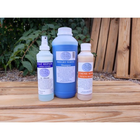 | Spécial bichon frisé et bolonais | - 1L Bright White - 250mL Crème texturisante - 250mL Bi-Phase |
