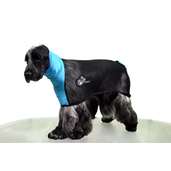 Un manteau très efficace pour les finitions, en maintenant le poil plaqué après le toilettage, il assure un dos plat sans boucle, vague indésirable ou mauvais plis. Cette veste en maille extensible s'ajuste au plus prés du corps afin de maintenir une fourrure discipliné. Indispensable pour les textures de poils qui ondulent ou bouclent trop après le bain.