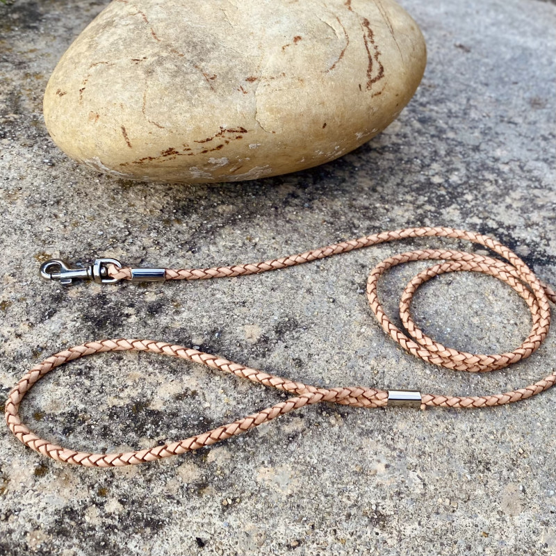 Laisse en cuir rond tressé  pour petites races
