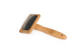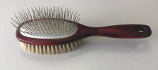 Ensuite pour les franges, vaporisez les longueurs généreusement avec le démêlant Dematting COAT HANDLER. Démêlez avec beaucoup de soin les longueurs avec une brosse à picots. Débutez par le bas des pattes en remontant progressivement mèche par mèche en prenant soin de travailler jusqu'à la racine. Si vous trouvez un nœud ajoutez du démêlant, utilisez une carde et un peigne pour l'éliminer. Si vous ne réussissez pas, utilisez un démêloir, mais leurs dents coupantes risquent de laisser des marques à n'utiliser qu'en tout dernier recours.
