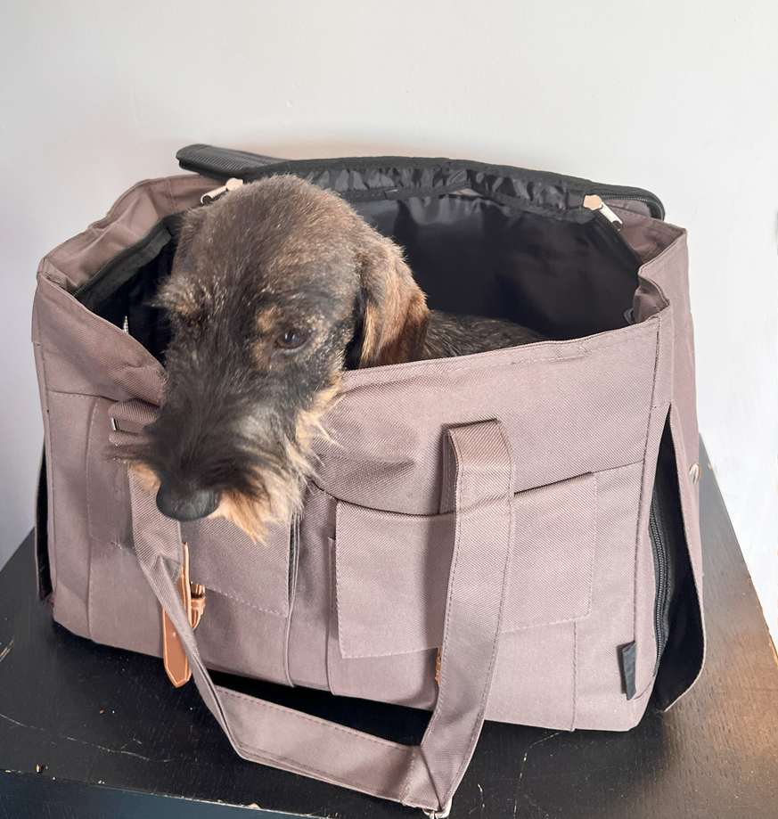 Pour les petits, un sac de transport permet de les emmener partout. Privilégiez un sac rigide afin qu’il soit plus confortable pendant son voyage. Laissez le sac ouvert par terre chez vous de façon à l'habituer. En balade, proposez lui de rentrer dans son sac en cours ou en fin de balade pour un moment de pause repos afin qu’il l’apprécie et ne le considère pas comme une punition.