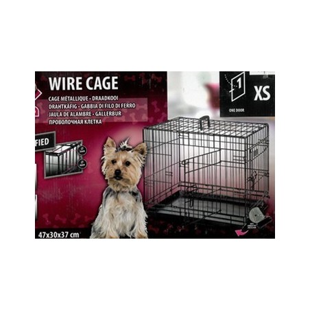 Cage métal avec deux portes, seule la XS n'a qu'une porte, un plateau bac qui se glisse facilement pour  le nettoyage.