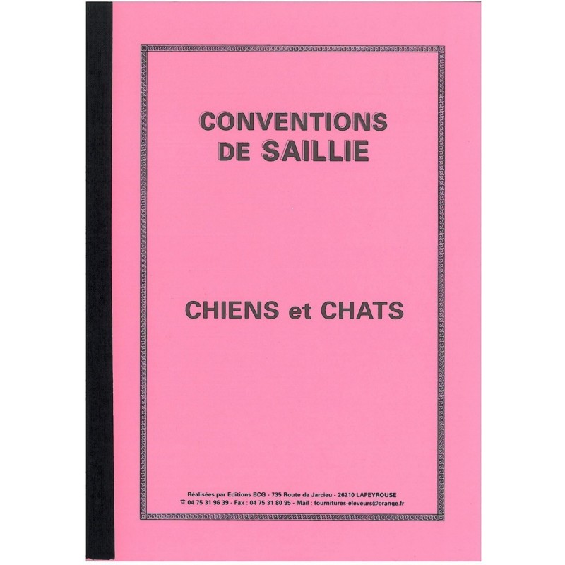 25 Conventions de saillie chiens & chats, en double exemplaires autocopiant.