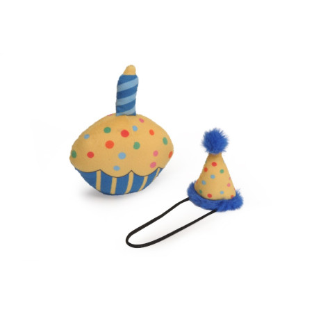 Ensemble de jouets pour chien amusant et mignon, composé d'un cupcake et d'un chapeau.