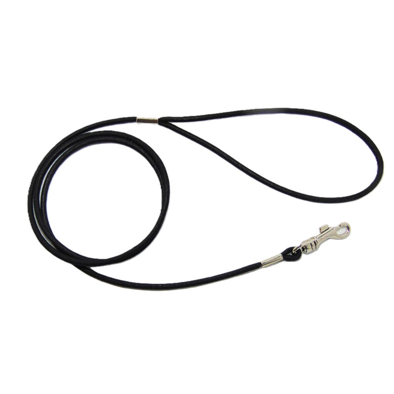 Cette laisse en tissus enduit est très prisé par les éleveurs de terrier, schnauzer etc...pour présenter leurs chiens en exposition. Elle a comme particularité sa souplesse et d'avoir un petit mousqueton adapté pour la présentation. La laisse est à associer avec un collier chainette ou nylon de présentation.