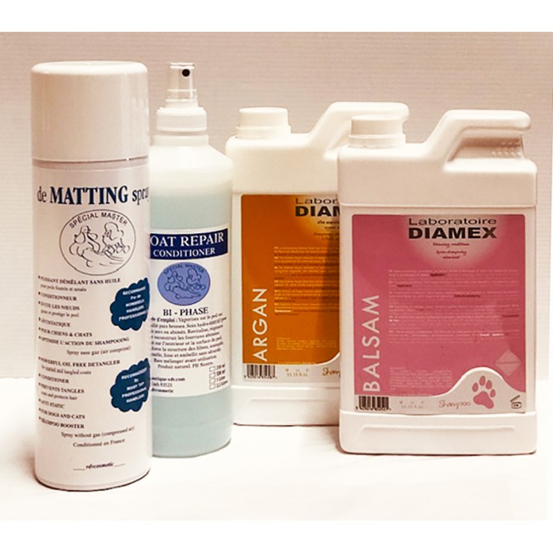 Un ensemble de matériels et produits dédié tout particulièrement au toilettage de tous les poils longs.
