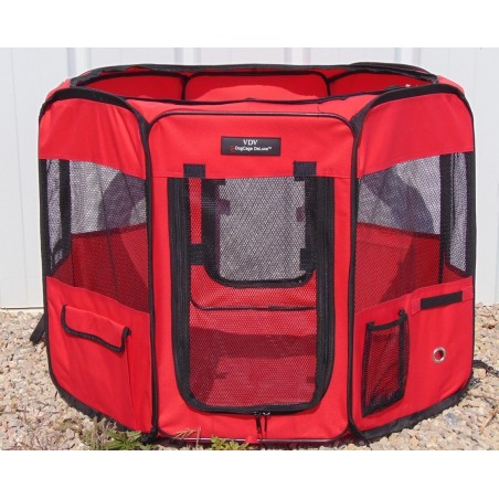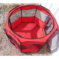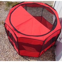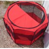 Le parc nylon est léger, pratique pour les voyages ou les expositions canines. Il se plie et se déplie en quelques secondes. Il possède un toit amovible, une toile de fond et 2 portes.